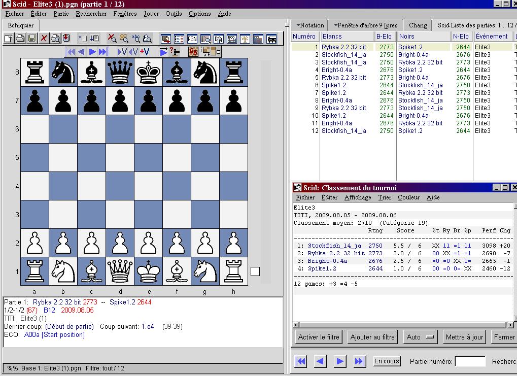 Depuis plusieurs années, on a pris l’habitude de constituer en Midi-Pyrénées des bases de parties des compétitions interclubs pour les équipes de Régionale 1 et Nationale IV (voir site de la ligue, on va donc les saisir avec SCID puisque cela est possible :