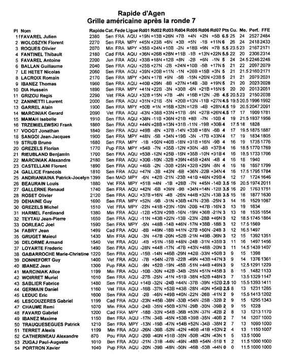 Olivier confirme son niveau et se hisse à la troisième place au général à 5,5/7 avec une Perf. à 2171 !, suivi de Romain, 8ème, Jean-Jacques et Florian, respectivement 18 et 20ème. Michel est à 3 points.