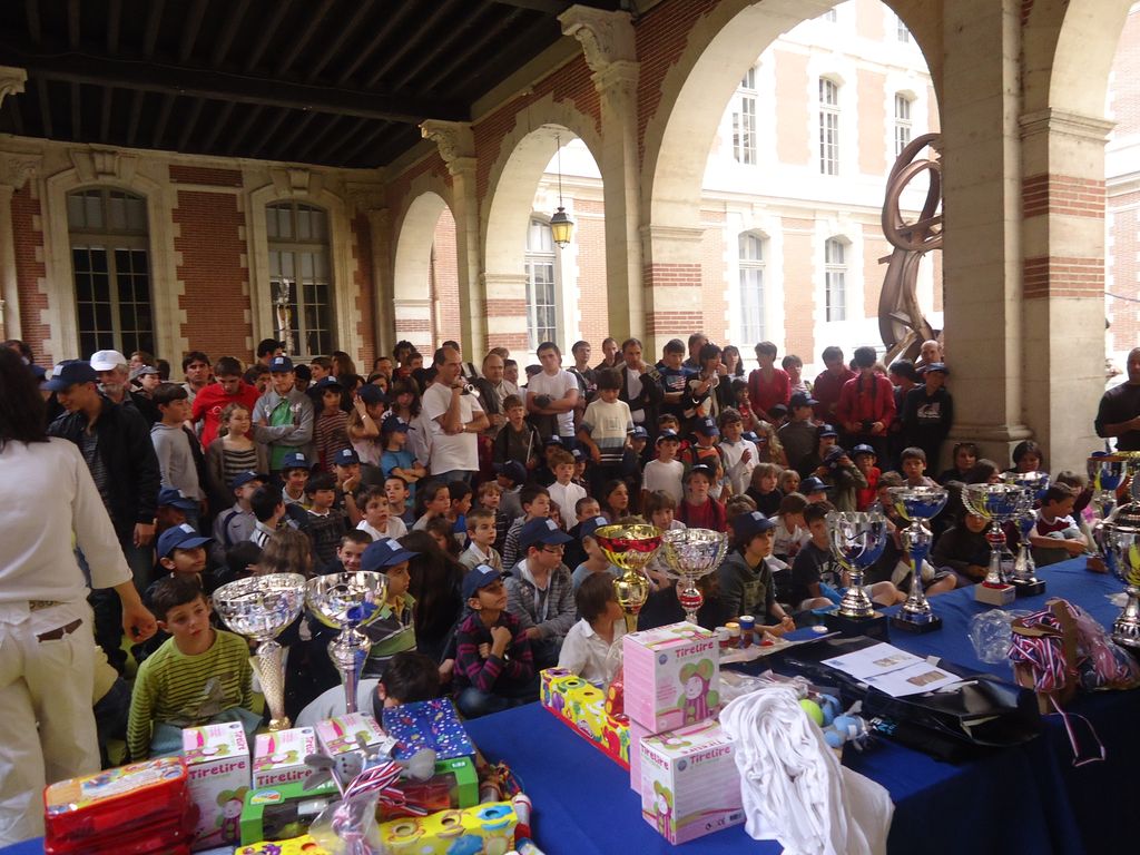La remise des prix a eu lieu dans la cour intérieure du capitole pour laisser place aux supporters de l’Ech... euh non, du Stade Toulousain en effervescence.