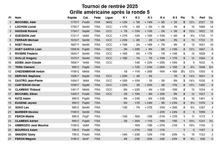 Nous y avons retrouvé Abel qui n’a pas manqué de remporter les cinq rondes, avec l’ensemble des joueurs du club et aussi des nouveaux, principalement des enfants.